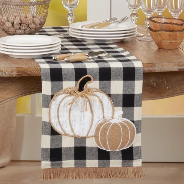 Plaid Pumpkin Rustic Textured Harvest Table Runner