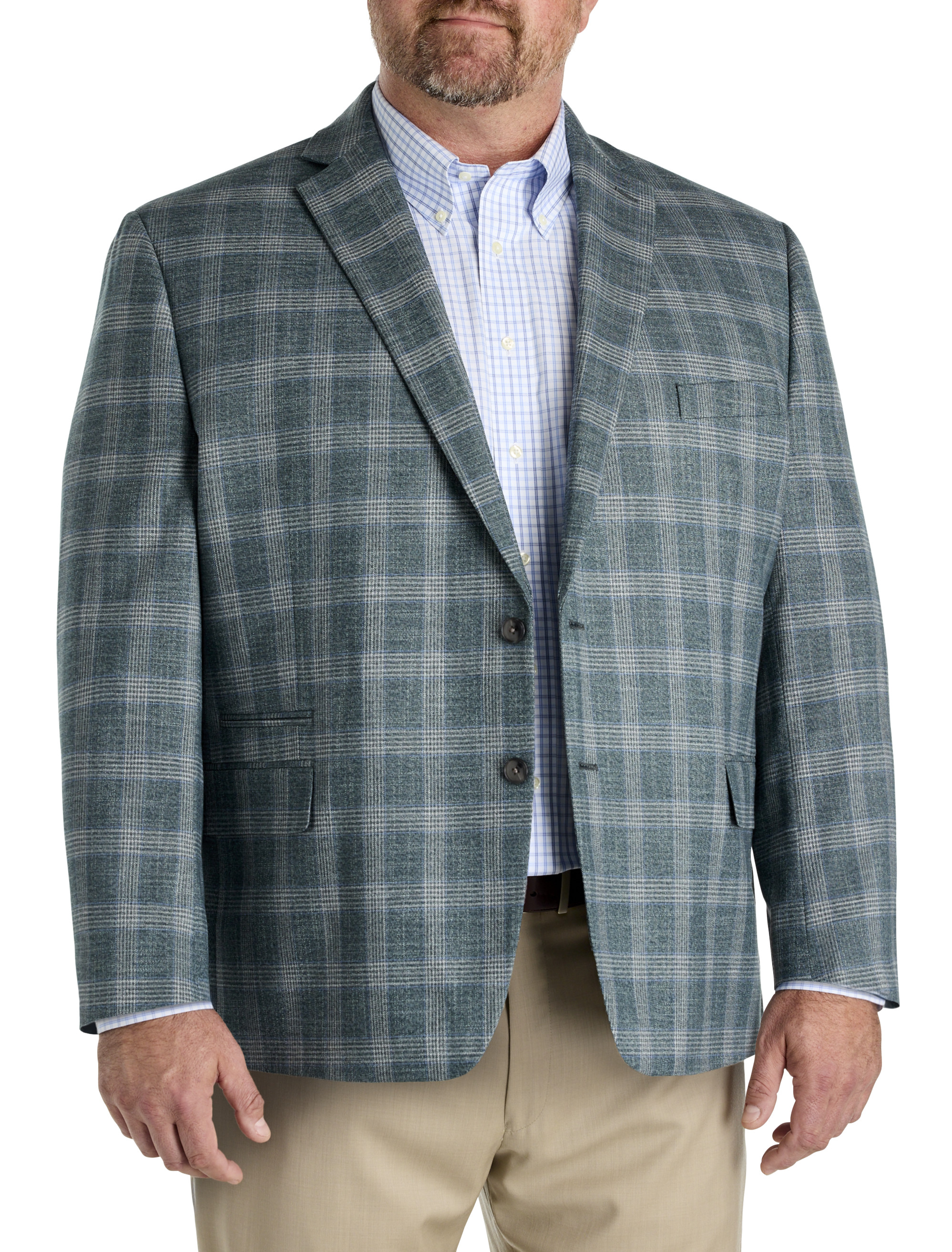 Every man deserves a well-tailored sport coat. This multi plaid style from Michael Kors is a true classic; crafted in a fabric blend that's extremely versatile and comfortable to wear across multiple seasons. A touch of stretch adds extra ease and gives you the freedom to move. Try it with dress pants for work or pair it with jeans for a fun night out on the town.