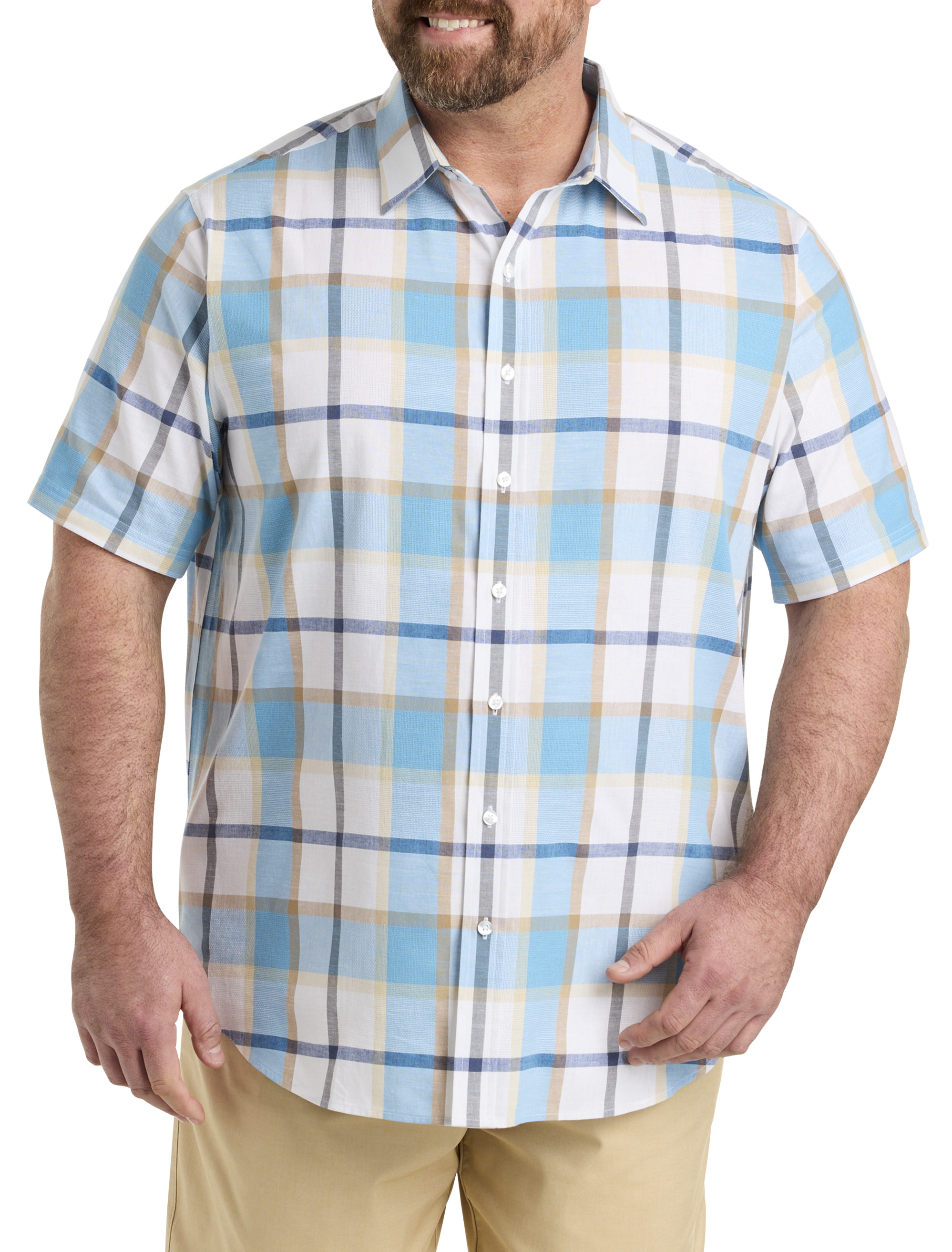Timeless and traditional, this casual shirt was designed right here at DXL to specifically fit Big and Tall guys. Crafted of 100% cotton that's lightweight and breathable, it features a nice, roomy fit that allows for the freedom to move without restriction. Pair it with jeans or shorts for a casual look, or dress it up with twills and a sport coat. It's a versatile look that's sure to be a favorite.