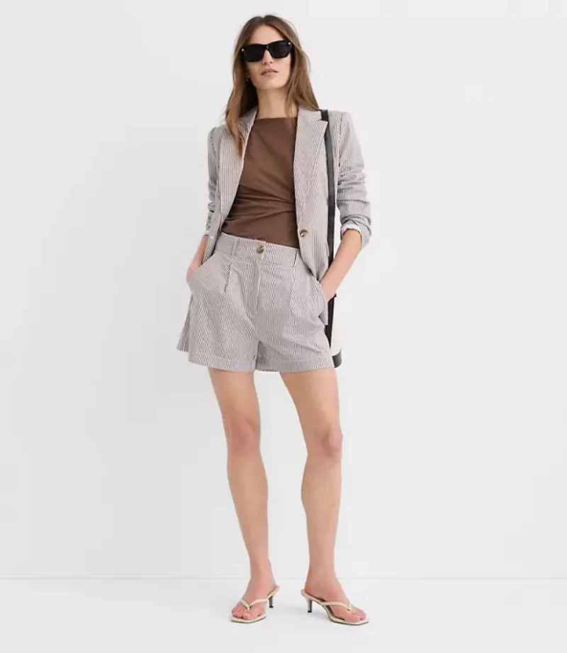 Pants Details: Front zip with button closure. Belt loops Slash pockets Back welt pockets., Rise: Sits at high waist, 13 1/2"rise, Imported:, Length: Short, 4"inseam, Fabrication: 98% Cotton 2 Elastane, Garment Care: Machine Washable Loft Pleated Shorts in Striped Seersucker Size 0 Cocoa Bliss Women's by Loft Size Regular - 0 Cocoa Bliss Women's Cotton, Blend Regular Shorts Pants 98% Cotton 2% Elastane Machine Washable