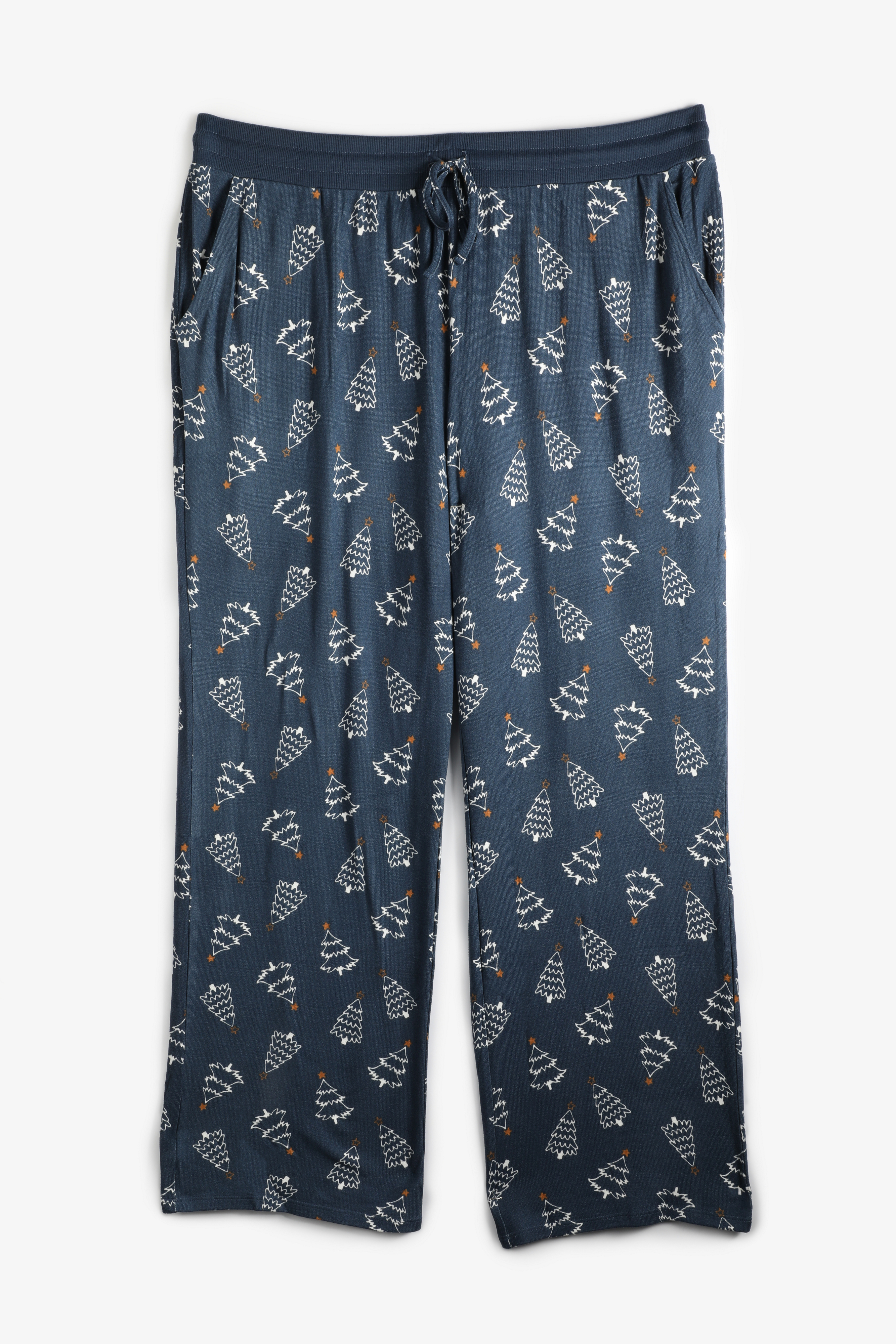 Plus Blue Hacci Christmas Tree Wide Leg Pajama Pants