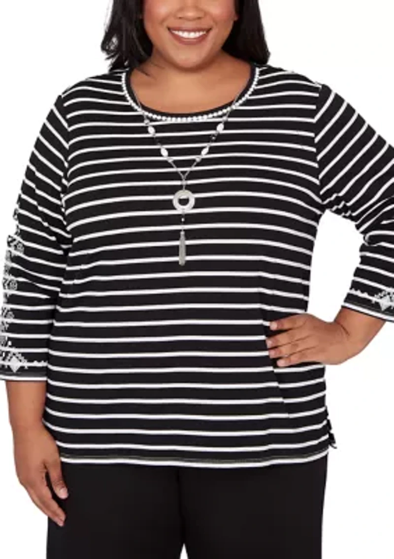 Plus Classics Stripe Top with Embroidered Sleeves in Chattanooga, TN
