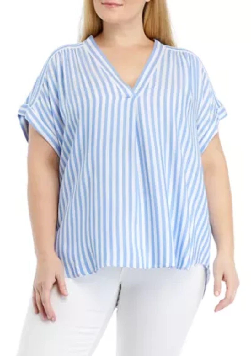 Plus Curved Hem V-Neck Placket Blouse in Chattanooga, TN