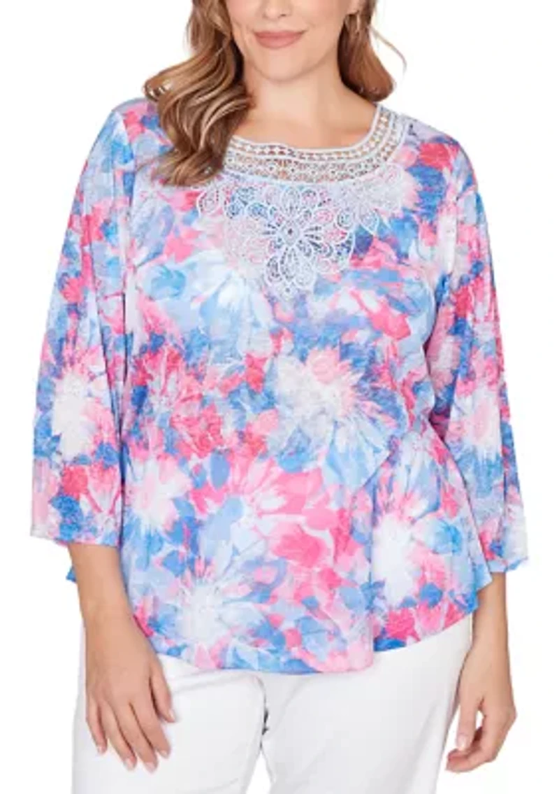 Plus Embellished Floral Sublimation Top