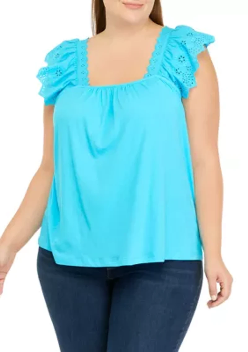 Eyelet trim adds detail to the ruffled shoulders of this chic cotton tank from Crown & Ivy™. Pullover Square neck Sleeveless Imported Belk Exclusive Product Specifications 27" L Material & Care Cotton Machine washable