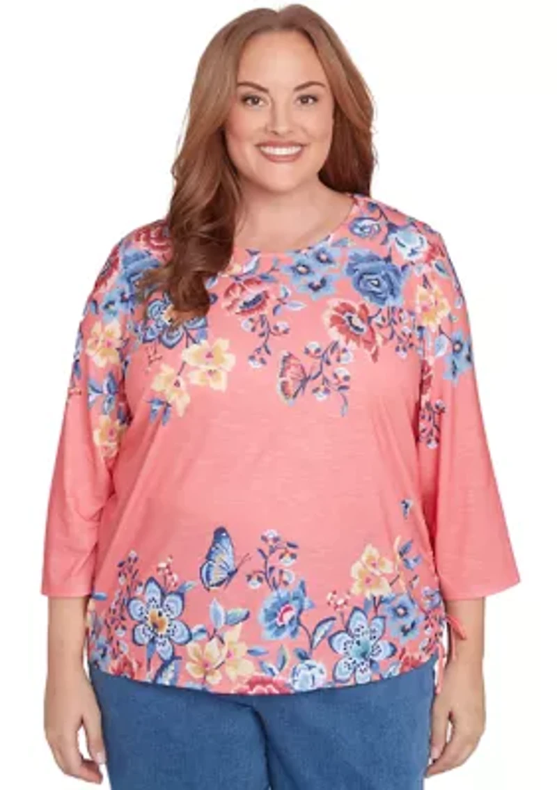 Plus Free Spirit Drama Placed Floral Print Top