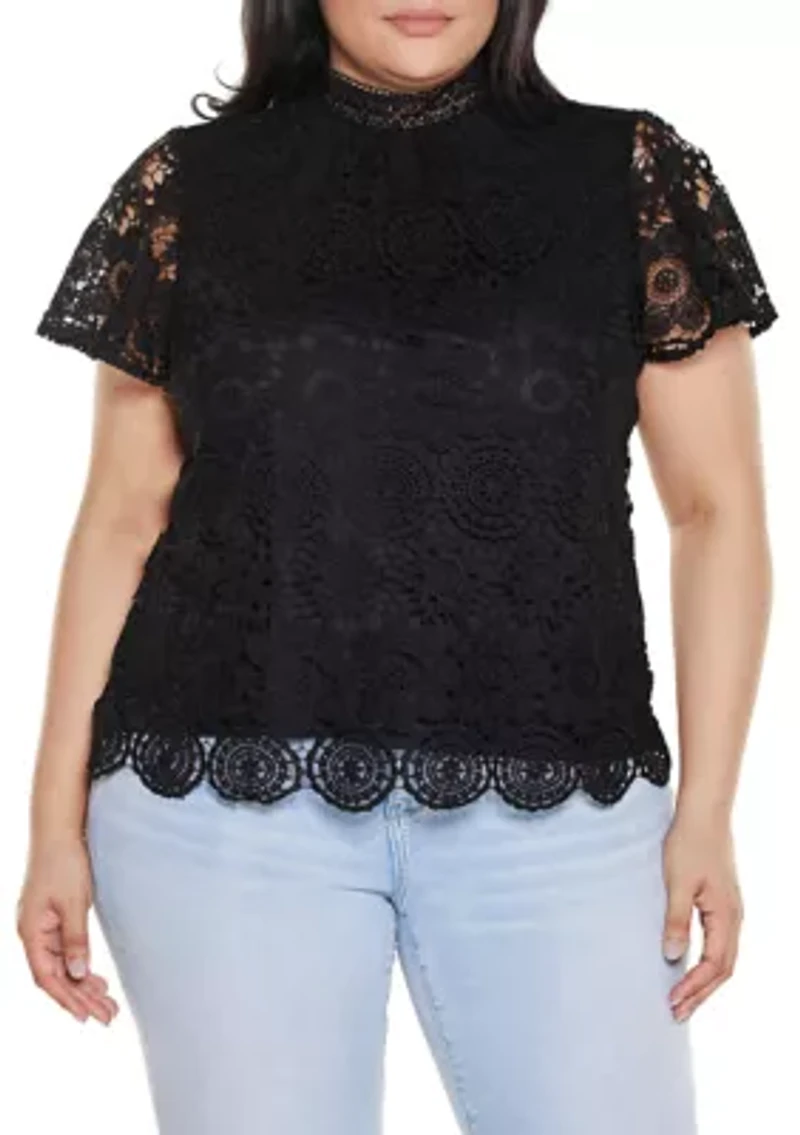 Plus Lace-Front Mock-Neck Top
