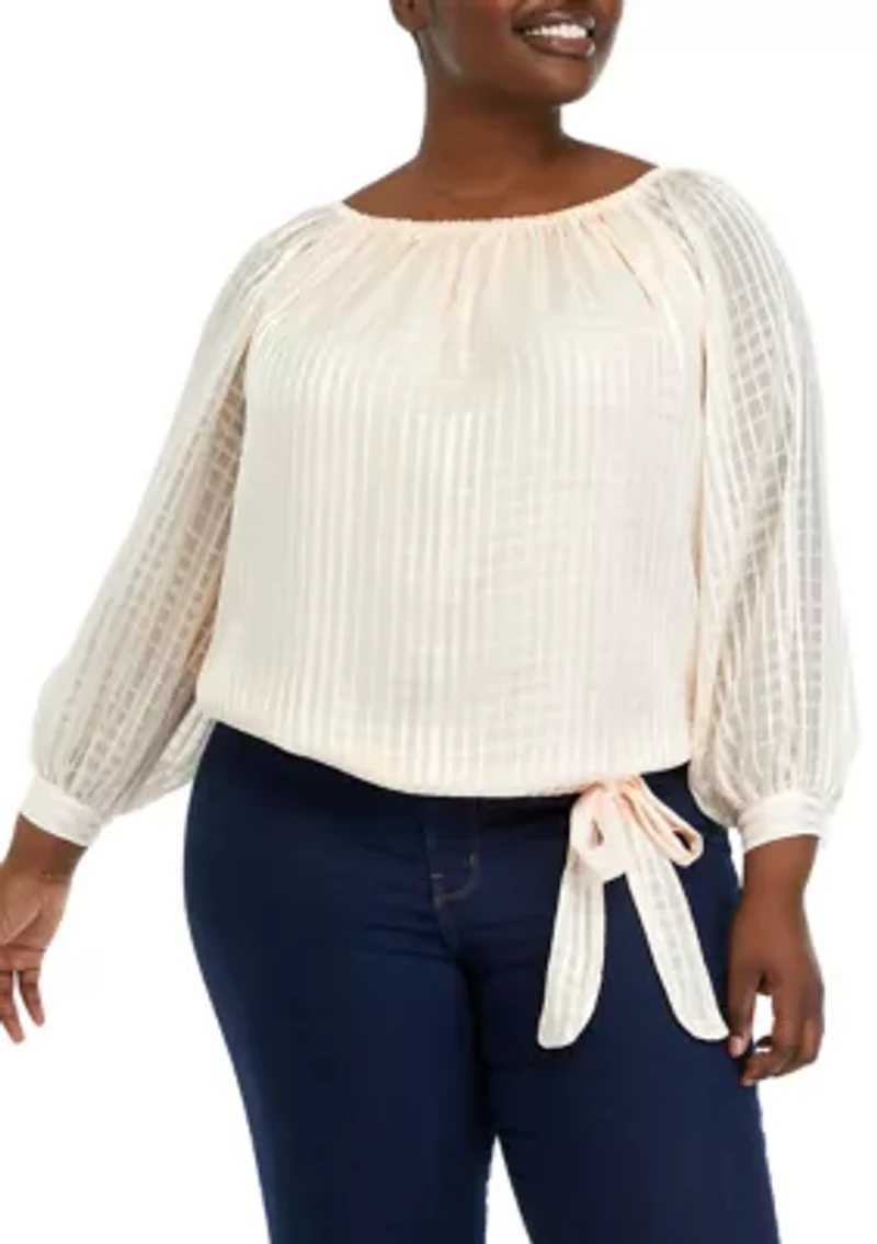 Plus Long Sleeve Blouse with Tie Detail