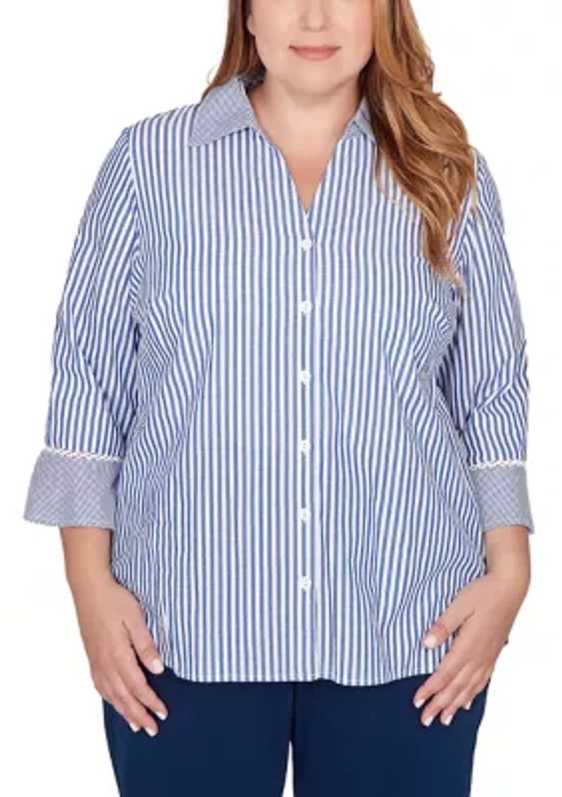 Plus Mykonos Mixed Stripe with Lace Trim Top