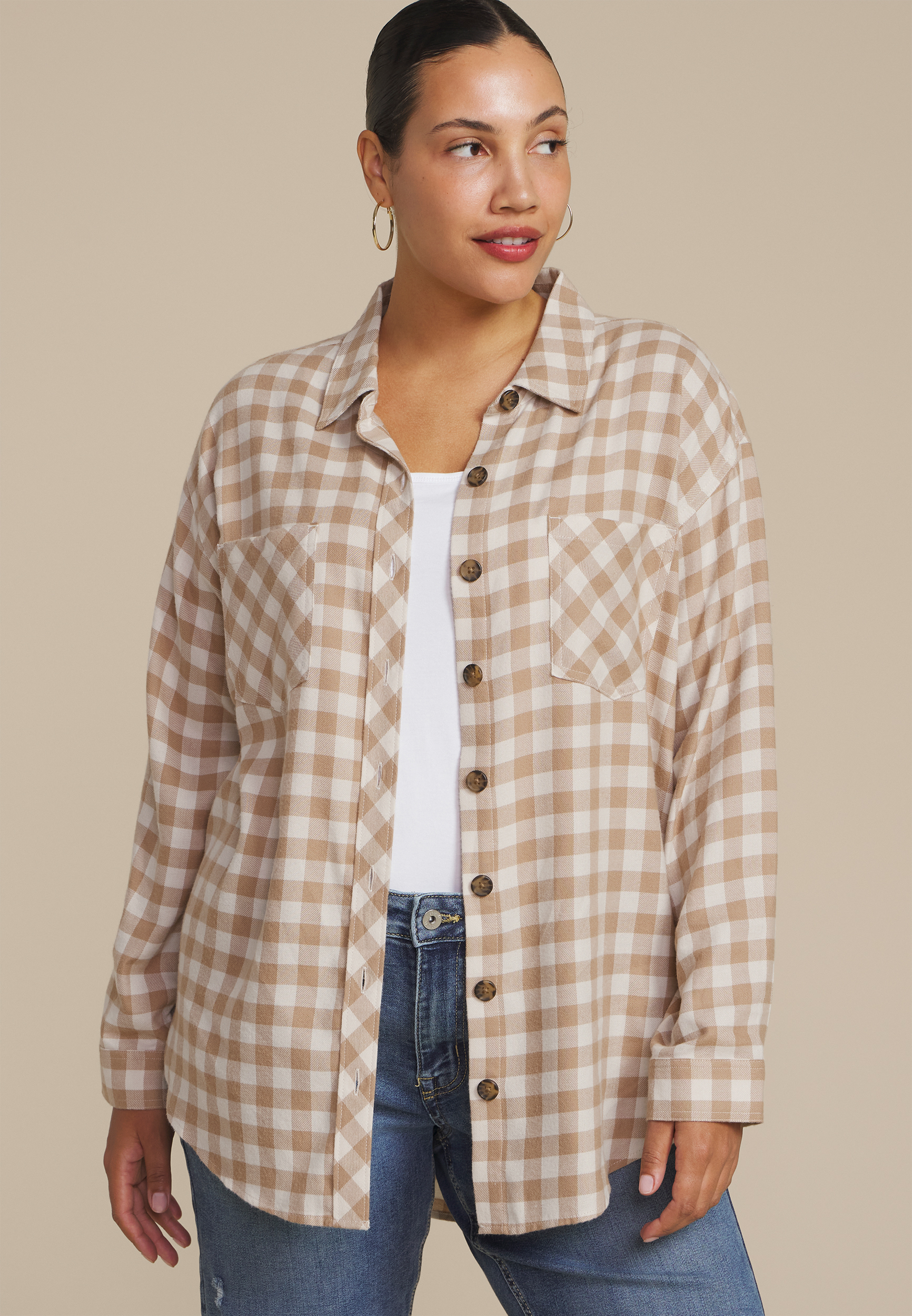 Plus Plaid Button Down Boyfriend Shirt