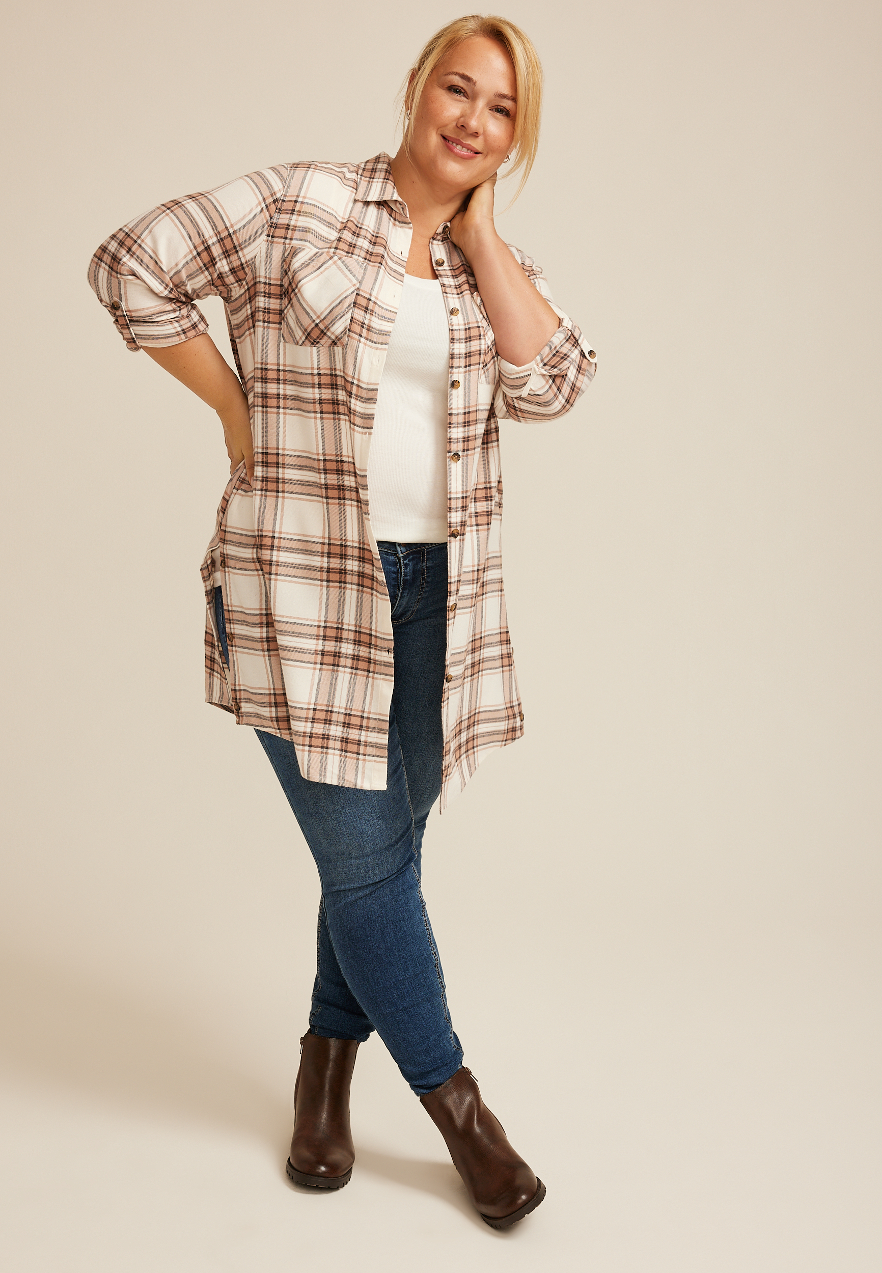 Plus Plaid Button Down Duster Shirt in Chattanooga, TN