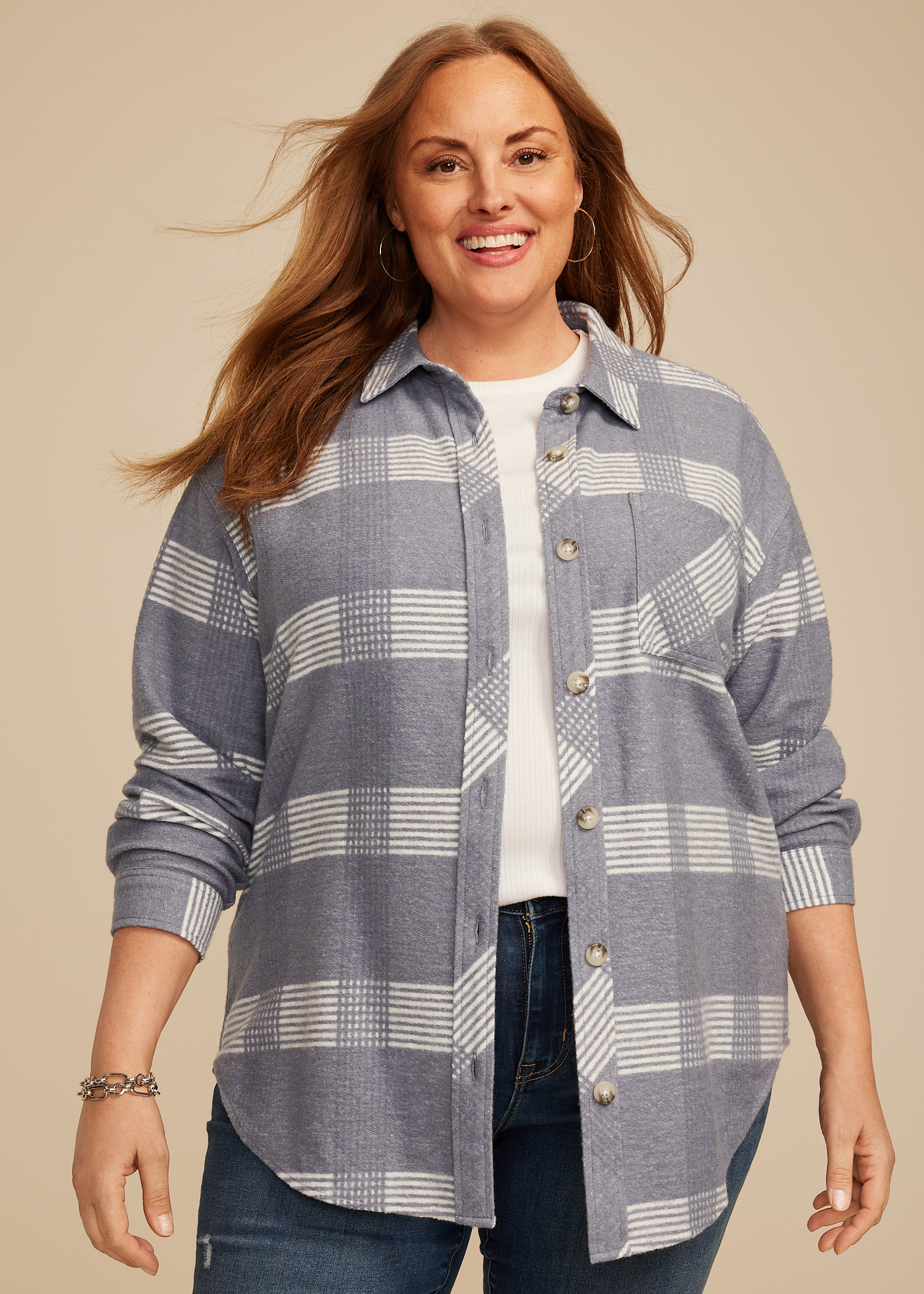 Plus Plaid Fleece Oversized Shacket in Chattanooga, TN