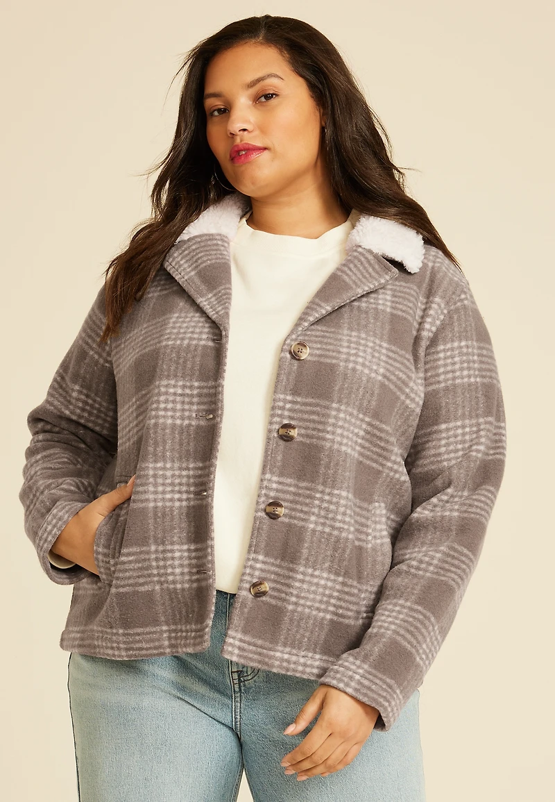 Plus Plaid Sherpa Collar Jacket in Chattanooga, TN