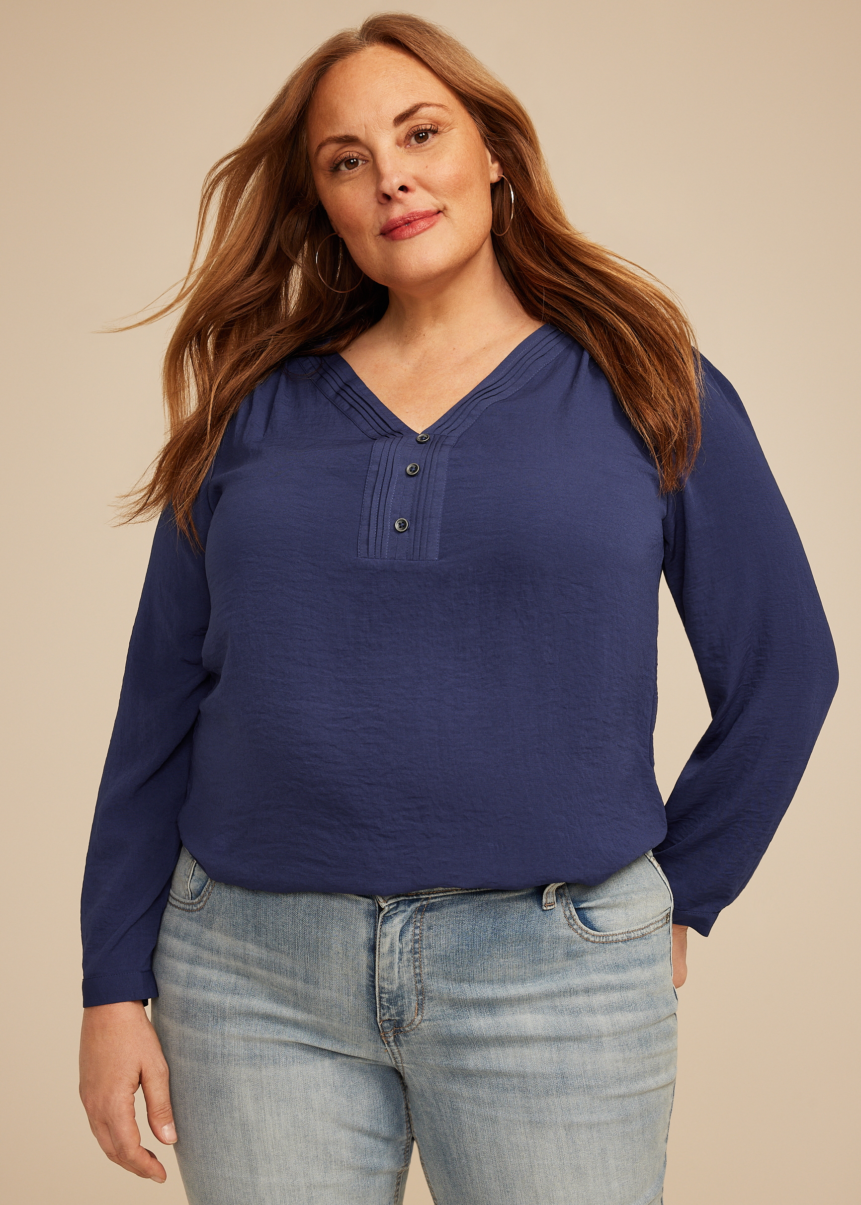 Plus Pleated V Neck Button Front Blouse in Chattanooga, TN
