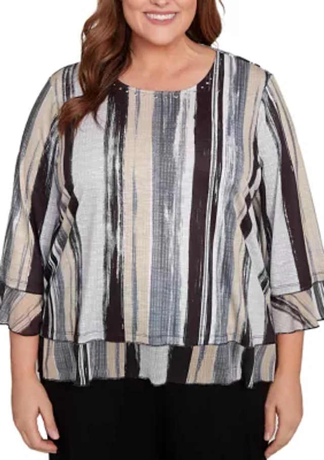 Plus Mitered Scallop Stripe Knit Tunic Top