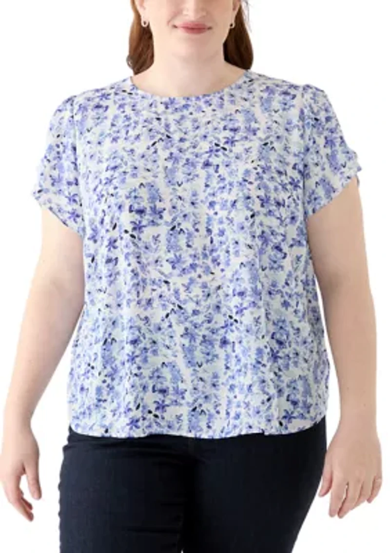 Plus Short Sleeve Button Back Woven Blouse