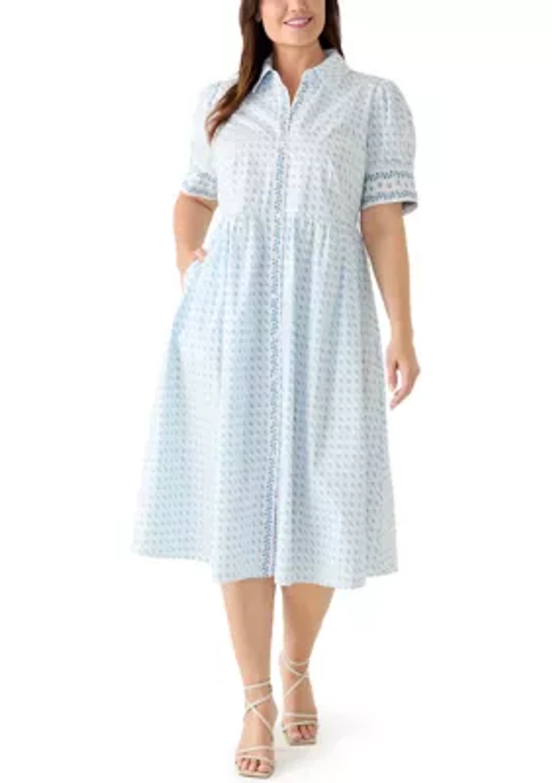 Plus Short Sleeve Button Front Midi Shirt Dress