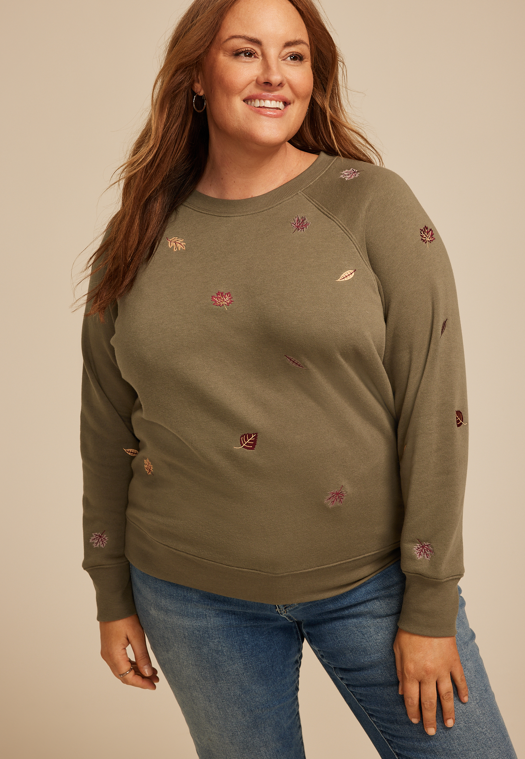 Plus Size Embroidered Falling Leaves Relaxed Fit Sweatshirt in Chattanooga, TN