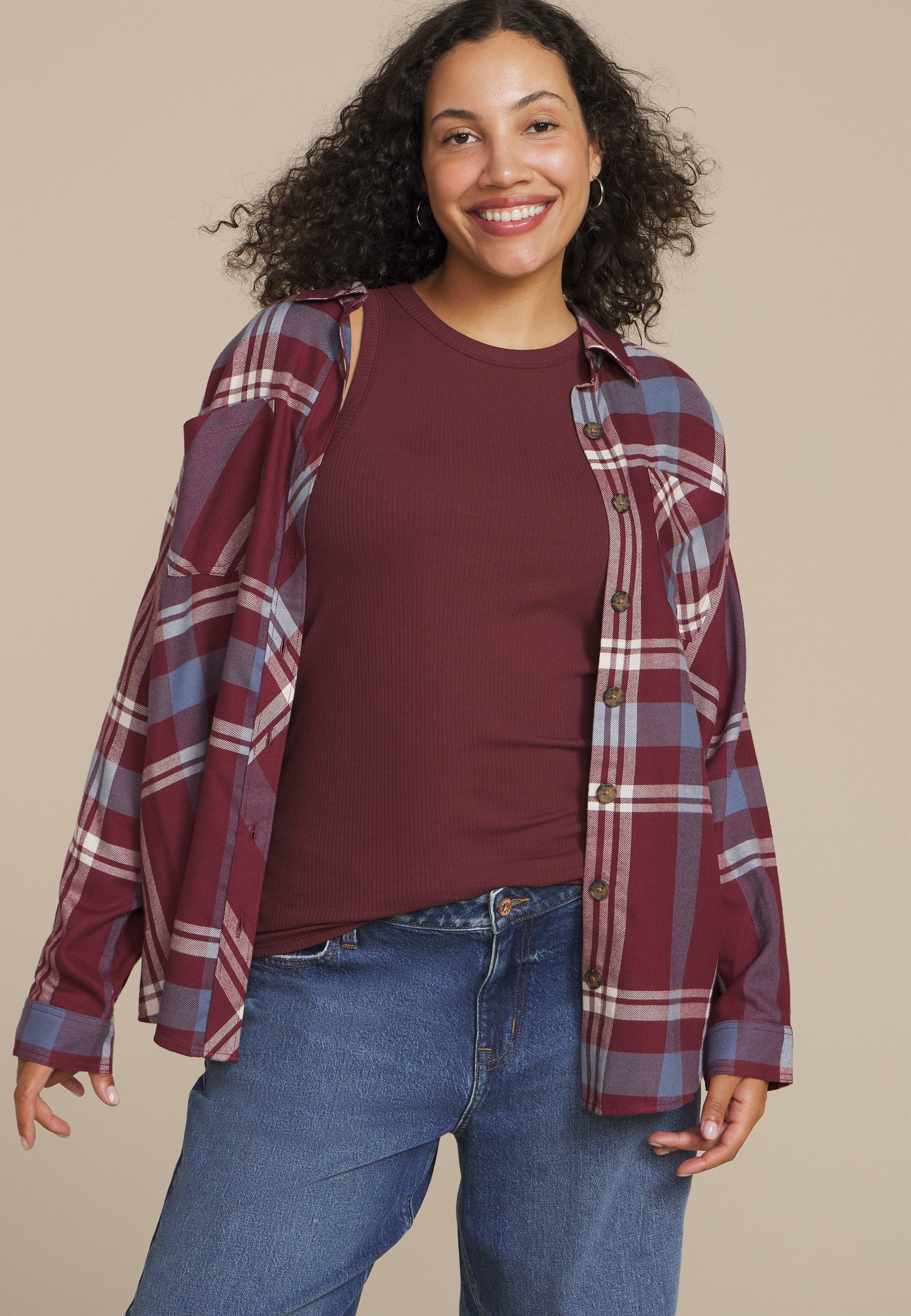 Plus Size Plaid Button Down Boyfriend Shirt in Chattanooga, TN