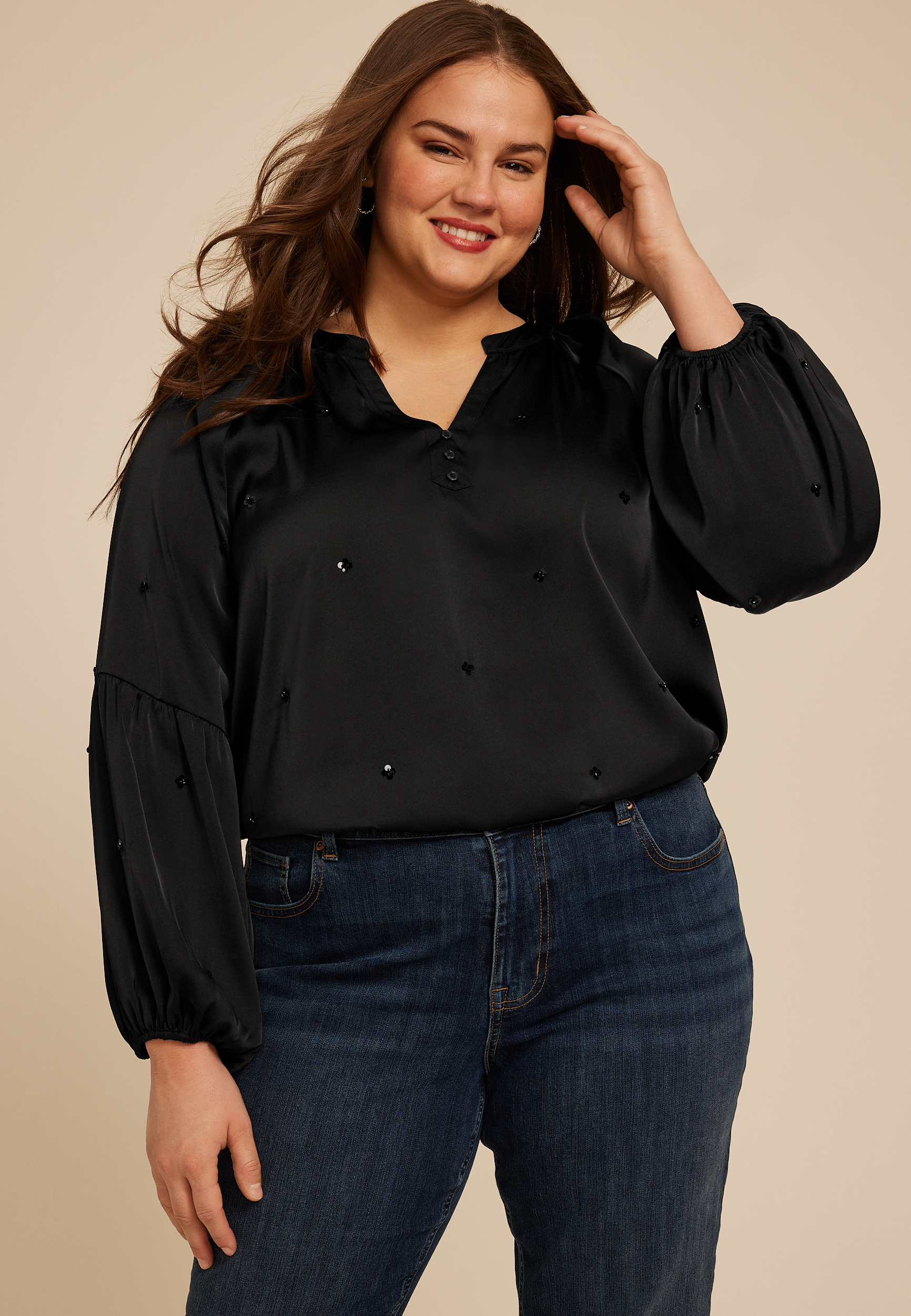 Plus Size Sequin Embellished Balloon Sleeve Blouse in Chattanooga, TN