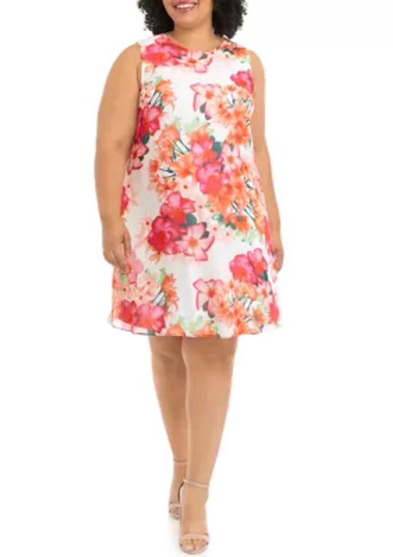 Plus Sleeveless Floral Chiffon Shift Dress in Chattanooga, TN