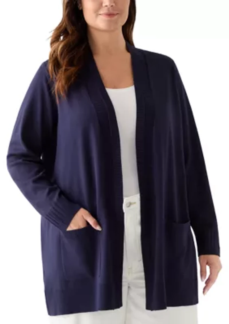 Plus Solid Rib Trim Open Cardigan
