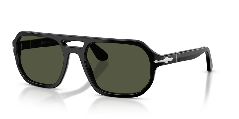 Meet Persol PO3393S Guido, the latest icon in timeless eyewear. Crafted entirely from premium acetate, this soft rectangular design combines clean lines with contemporary elegance. A refined double bridge adds a touch of sophistication, while the slender temples ensure effortless comfort. Finished with green lenses and a polished black frame, these Persol sunglasses embody understated luxury. Perfect for those who appreciate classic style with a modern twist.