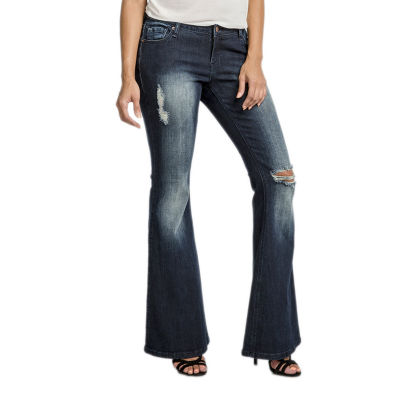 Poetic Justice Womens Mid Rise Ripped Stretch Fabric Curvy Fit Flare Leg Jean in Chattanooga, TN