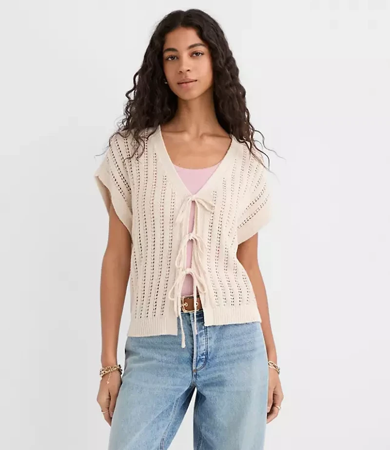 Pointelle Bow Wedge Sweater