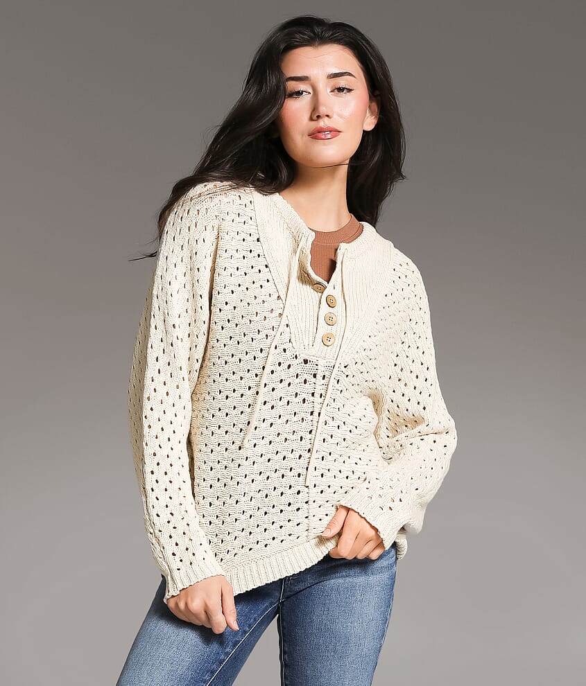 Open weave oversized sweater Cinch tie detail Bust measures 43" on size small Body length 22" on size small