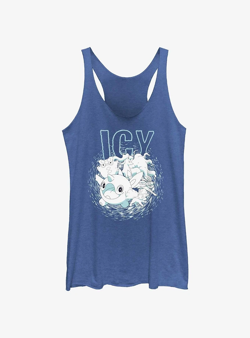 We all scream for ICY Pokémon! This racerback tank features Ice Types Galarian Darumaka, Alolan Ninetails, Cetoddle, Glaceon and Alolan Vulpix.