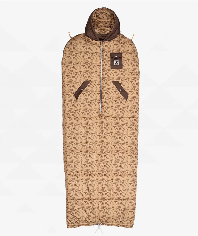 With a reversible insulated construction, Poler's goomer brown poncho is made for relaxation. The soft ripstop fabric boasts images of mushrooms throughout, with brown color blocked accents. Snaps along the sides allow the poncho to convert into a blanket