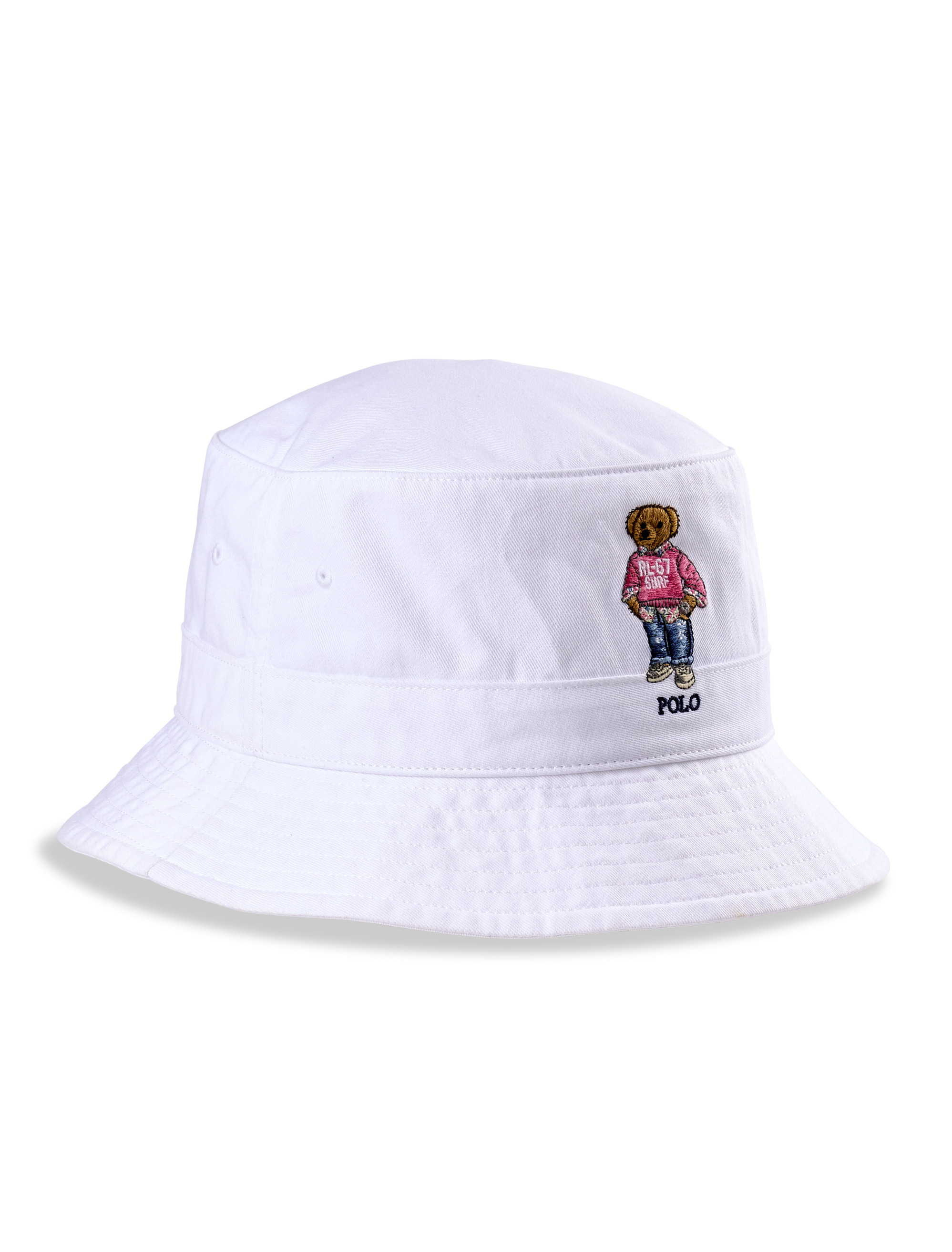 The world's beloved bear is casually dressed to impress and featured on the front of this 100% cotton bucket hat. Crafted with an ventilated brim and interior sweatband that absorbs moisture, it's the perfect topnote to all your classic Polo Ralph Lauren looks.