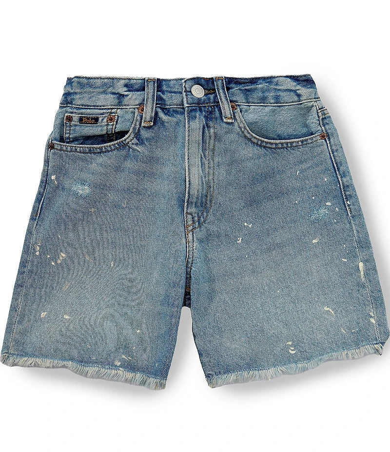 From Polo Ralph Lauren, these shorts feature: Zip/button-front closure Button custom-developed with a “Polo Ralph Lauren” logo. Belt loops 5-pocket styling with metal rivets Rivets custom-developed with a “PRL 67” logo “Polo” logo at the coin pocket Faux-suede “Polo Ralph Lauren” patch at the back-right waist Cutoff hems Relaxed fit Sizes 8-12, adjustable buttoned tabs at the interior ensure a room-to-grow waist Cotton denim Machine wash/tumble dry Imported.