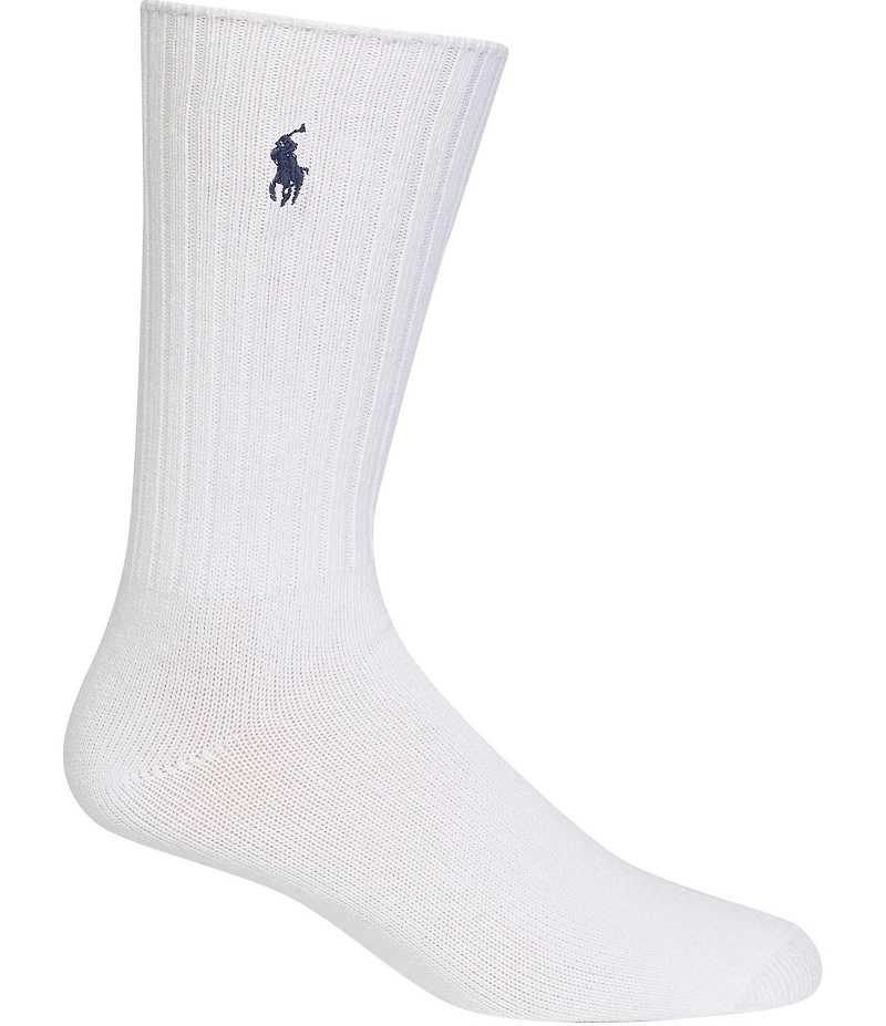 From Polo Ralph Lauren Big & Tall, these socks feature: Crafted to provide softness, breathability, and a great fit these crew socks feature an embroidered "polo player" and knit ribbing from ankle to cuff One size fits most men's shoe sizes 13-16 cotton blend machine wash/tumble dry Imported.
