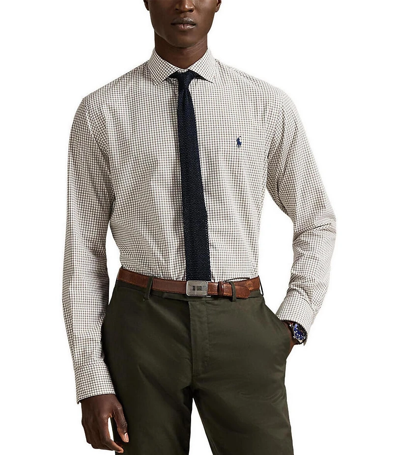 Polo Ralph Lauren Classic Fit Mini Check Stretch Poplin Long Sleeve Woven Shirt