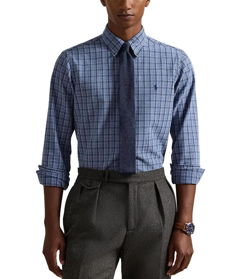 Polo Ralph Lauren Classic Fit Mini Plaid Brushed Oxford Long Sleeve Woven Shirt