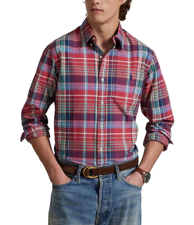 Polo Ralph Lauren Classic Fit Multi-Color Plaid Oxford Long Sleeve Woven Shirt