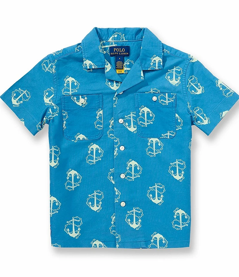 Polo Ralph Lauren Little Boys Short Sleeve Anchor Print Oxford Shirt