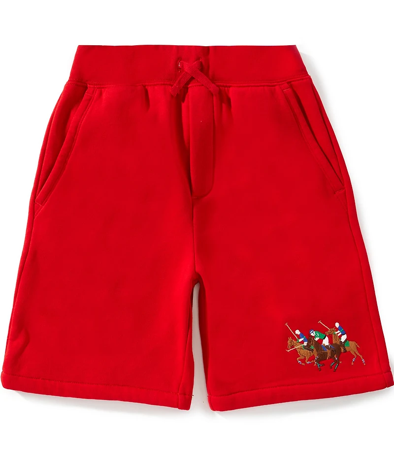 From Polo Ralph Lauren, these shorts feature: Ribbed drawstring waistband Pull-on construction Faux fly 2 front angled pockets Back-right patch pocket "Triple-Pony" logo embroidered on the left hem Cotton/polyester fleece that’s washed for softness Machine wash/tumble dry Imported.