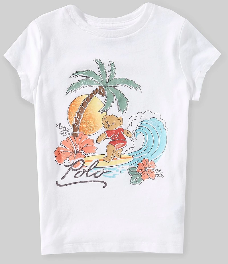 Polo Ralph Lauren Little Girls Cap Sleeve Polo Bear Surfing T-Shirt