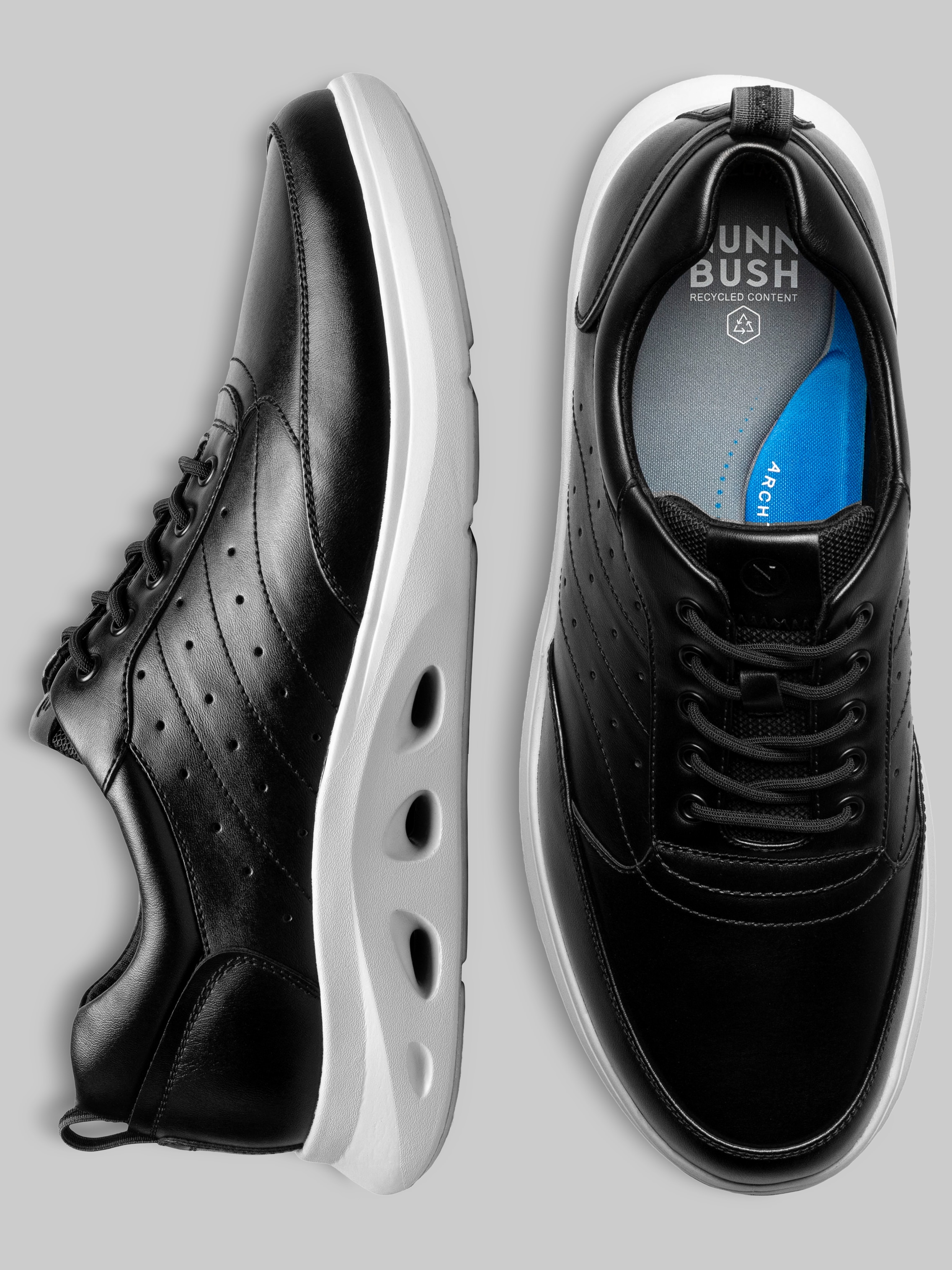 Think style meets comfort with these Ponte Moc Toe U-Balance Dress Sneakers. Designed for the guy who moves effortlessly from desk to date night, these shoes feature a cushioned insole and moisture-wicking fabric to keep you cool and comfy. The almond toe and sleek lace-up design exude laid-back sophistication, while the laser-perforated details add a modern edge. With a flexible rubber sole, youre ready to hit the ground running - literally. These low-cut kicks redefine casual, making them the go-to for everything from athleisure vibes to minimalist flair. It's time to treat your feet!