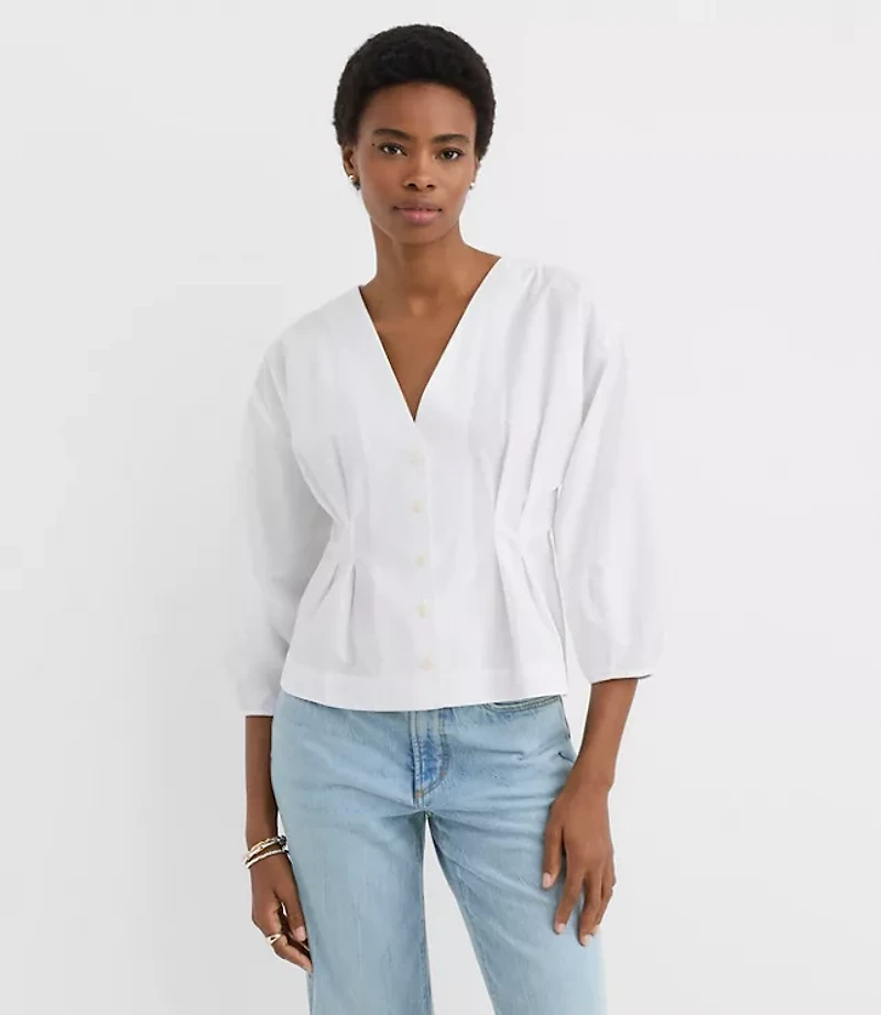 We love how a stretchy cinched back and sleek side pleats add an always perfect, waist - flattering fit to this crisp cotton poplin must - have. V - neck. 3/4 sleeves. Button front, Hit: Hits at hip, Imported:, Length: 23"long, Fabrication: 100% Cotton, Garment Care: Machine Washable Loft Poplin Cinched Back Shirt Size 2XS Chai Latte Women's by Loft Size Regular - 2XS Chai Latte Women's 100%, Cotton V - Neck, Long Sleeve Blouse Tops Wear To Work 100% Cotton Machine Washable