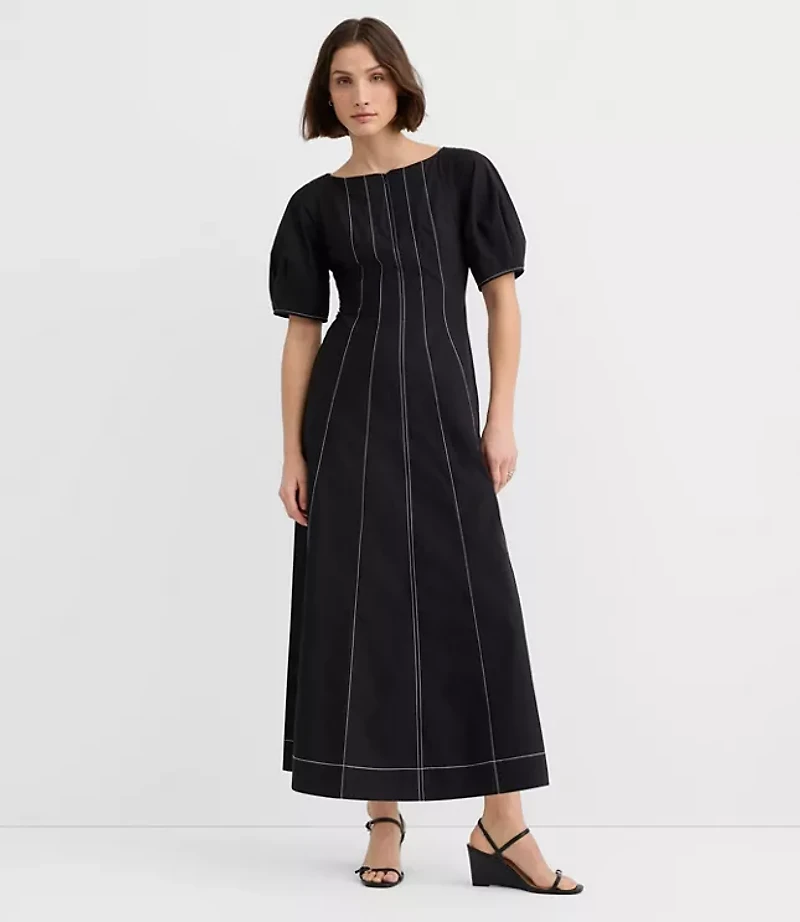 Poplin Seamed Midi Pocket Dress