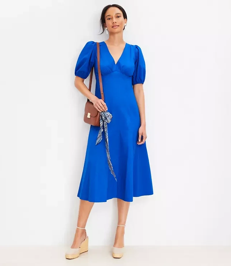 Poplin Tie Back Puff Sleeve Midi Dress