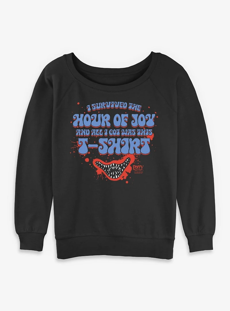 Poppy Playtime I Survived The Hour Of Joy Womens Slouchy SweatshirtPoppy Playtime I Survived The Hour Of Joy Womens Slouchy Sweatshirt