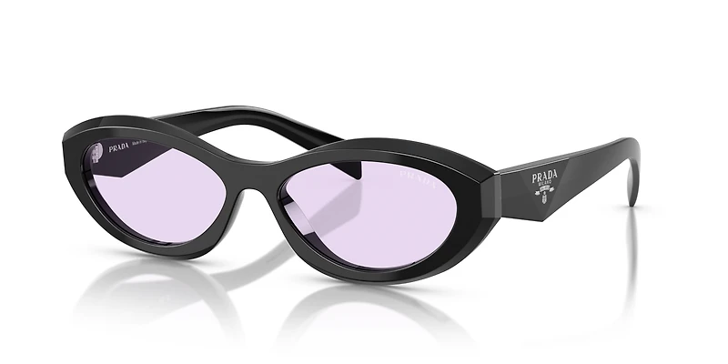 Elevate your style with the Prada PR 26ZS sunglasses. Designed with bold irregular frames, these full-rim glasses create a striking, contemporary statement. The acetate construction ensures lightweight comfort, while the black sunglasses frame front pairs effortlessly with the classic violet lenses. Perfect for making any look feel modern and refined, Prada sunglasses are a timeless choice.