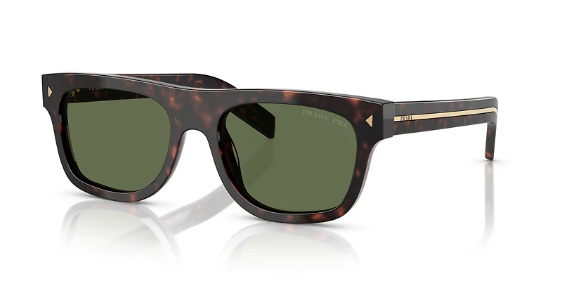 Experience the pinnacle of luxury with the Prada PR B12SF sunglasses, crafted from rich tortoise acetate for a refined look. The rectangular frames add sleek structure, while polarized green lenses reduce glare and enhance clarity in any light. Designed with a sunglasses' low bridge fit for added comfort, these full-rim Prada sunglasses exude sophistication. Wide temples with extended metal plaques and the iconic Prada logo complete the design, creating a timeless accessory with modern flair.