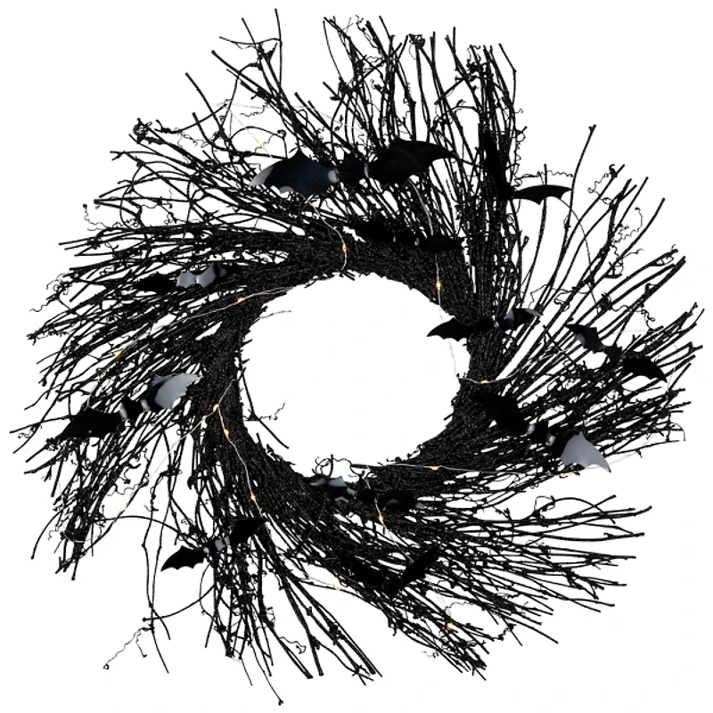 Pre-Lit Black Twig Wreath with Bats in Chattanooga, TN