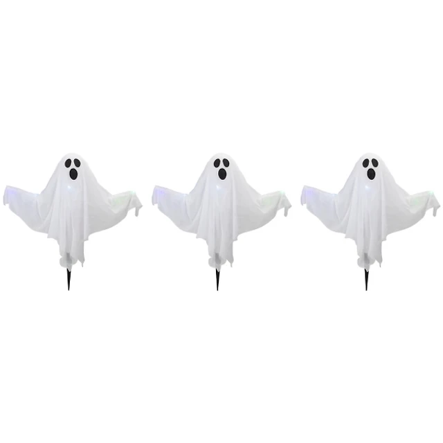 Pre-Lit Color Changing Ghost Yard Stakes, Set of 3